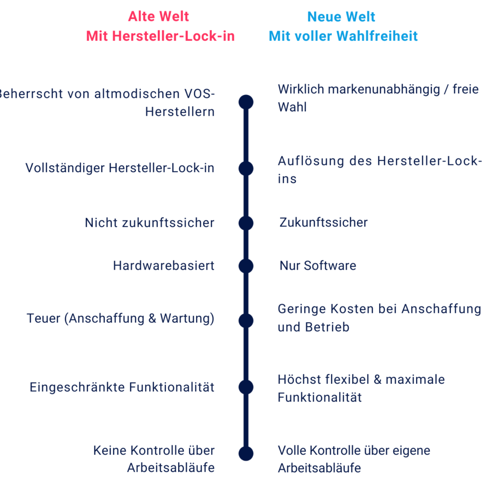 Wir befreien (Gesundheits-)Organisationen von der Herstellerbindung klassischer Hardware-Anbieter, indem wir eine markenunabhängige Kommunikation zwischen Systemen durch Integrationen und eigene Anwendungen ermöglichen. Als Organisation haben Sie völlige Entscheidungsfreiheit bzgl. der Technologie, die Sie einsetzen möchten. Entscheidend ist der Arbeitsprozess, nicht die Marke oder der Lieferant.